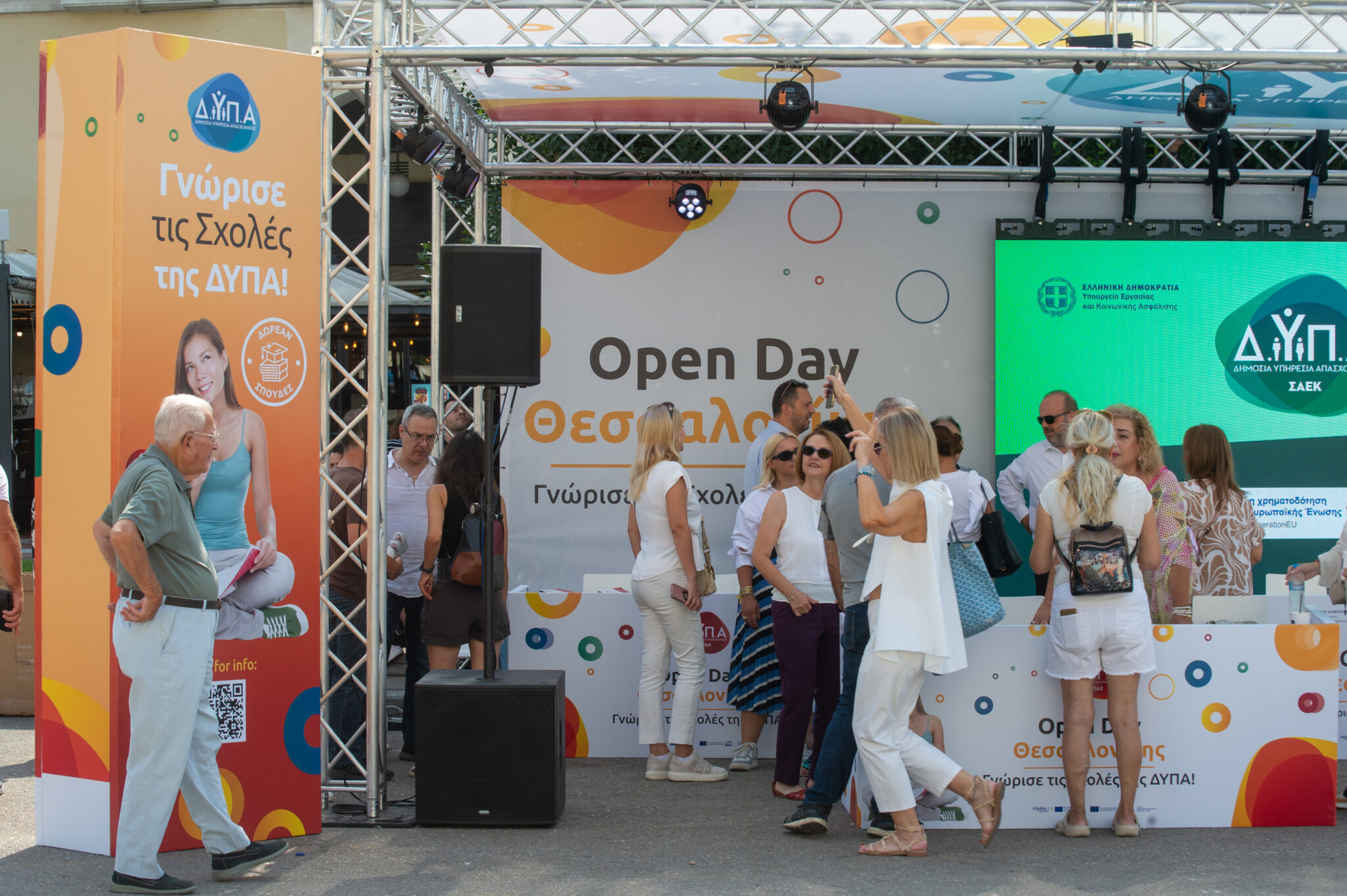 DYPA (Public Employment Service) entrusted our company to organize an impactful Open Day event, designed to inform and inspire young individuals aged 15 to 29 about the diverse opportunities offered by DYPA’s vocational schools and employment programs. The event took place on the 8th & 9th of September 2024, right in the center of Thessaloniki, at Aristotelous square. A large, branded kiosk served as the centerpiece of the event, featuring bespoke design and branding to create an inviting and engaging atmosphere. As young visitors arrived, they were warmly welcomed by DYPA representatives, who provided in-depth information about the organization’s educational programs, career development initiatives, and the many benefits of participating in DYPA supported opportunities. Throughout the 2 days, participants explored their options for studies and employment, while receiving branded giveaways such as hats and pens, as thoughtful tokens of appreciation. The Open Day offered attendees the chance to engage with DYPA’s experts, ask questions, and gain valuable insights into their future possibilities for education and career growth. The event successfully created an inspiring and empowering experience, leaving participants motivated and better equipped to take confident steps toward building their professional futures.